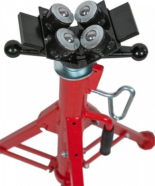 Двойная роликовая насадка для трубных опор Remmers Atlant 1/8-12 (Реммерс Атлант 1/8-12) на скользящей площадке устанавливается с 2-х сторон V-образной опоры трубных стоек и фиксируются барашковым винтом. Направляющий ролик используется для снижения момента трения с возможностью приложения минимальных усилий при перемещении по опоре или вращении труб. Для подстройки под диаметр трубы площадка с роликами имеет возможность перемещения и фиксации в необходимом положении. Как правило, трубная опора используется совместно с резьбонарезными станками, желобонакатчиками, электрическими труборезами и т.д.