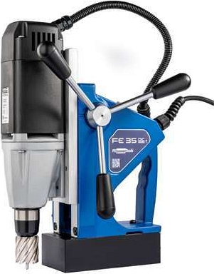Магнитный сверлильный станок FE 35 DC (ФИ 35 ДЦ) на магнитном основании предназначен для сверления сквозных отверстий Ø 12 – 35 мм корончатыми сверлами, Ø до 13 мм спиральными сверлами.